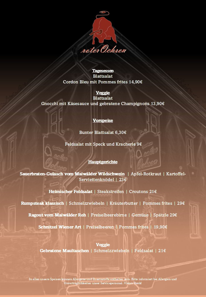 Wir freuen uns darauf, Sie bei uns begrüßen zu dürfen und Ihnen einen unvergesslichen Aufenthalt in unserem Gasthaus Roter Ochsen zu bieten!
